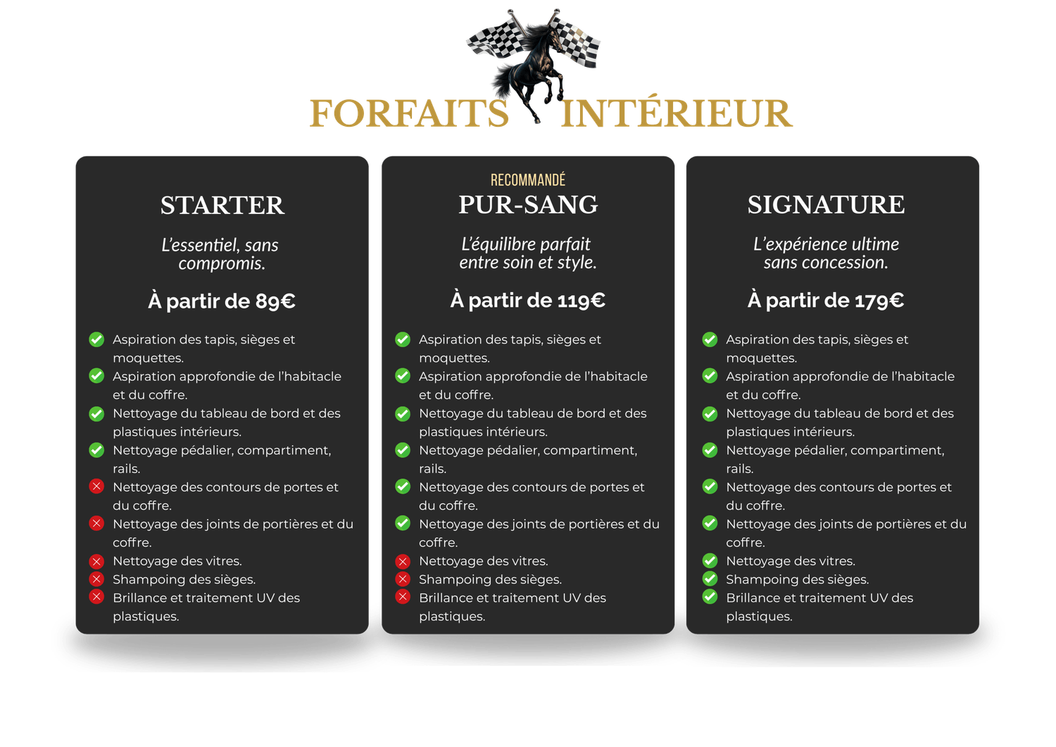 Chaque voiture mérite un soin à la hauteur de ce qu’elle représente. Nos forfaits ont été conçus comme des expériences, pour révéler l’éclat et le caractère unique de votre véhicule.